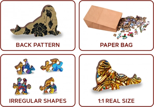 Elk stukje is uitgesneden uit een stevige HDF-plaat van 3–4 mm dik, wat een lange levensduur en comfortabel puzzelen zonder splinters garandeert. In de verpakking vind je ook een losse voorbeeldafbeelding voor gemakkelijkere oriëntatie. De duurzame aanpak van het merk WOODEN CITY betekent 100% eco-verpakking zonder plastic – de puzzel is opgeborgen in een papieren zak en doos.