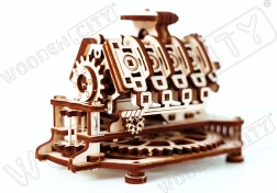 De houten 3D-puzzel van de V8-motor is een functioneel mechanisch model, geïnspireerd op motoren die ook in de Formule 1 worden gebruikt. De open constructie maakt het mogelijk om de ritmische beweging van de zuigers en de werking van het hele mechanisme te volgen. De assemblage is doordacht, leuk en tegelijk leerzaam – je begrijpt de principes van tandwielen, overbrengingen en mechanische koppelingen.