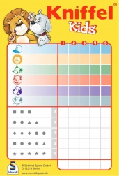 Kniffel Kids is een populair familiespel in kinderversie dat observatievermogen, logica en eenvoudig rekenen stimuleert. Spelers gooien met dierendobbelstenen, proberen de beste combinaties te vormen en noteren de resultaten in het meegeleverde blok. Dankzij het stevige metalen doosje is het spel perfect voor uitstapjes, vakanties en in restaurants.
