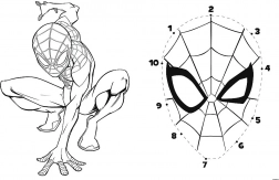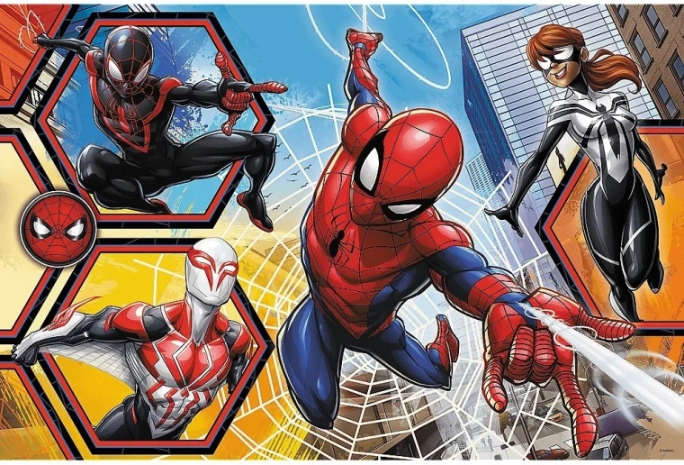 Dynamische illustraties met de actieheld SPIDER-MAN verblijden jonge fans en motiveren ze om verder te puzzelen en te creëren.