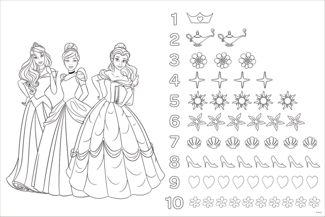 Eén zijde om te puzzelen met DISNEY PRINCESS, de andere om in te kleuren en met simpele opdrachtjes – de ideale mix van creativiteit en logica.
