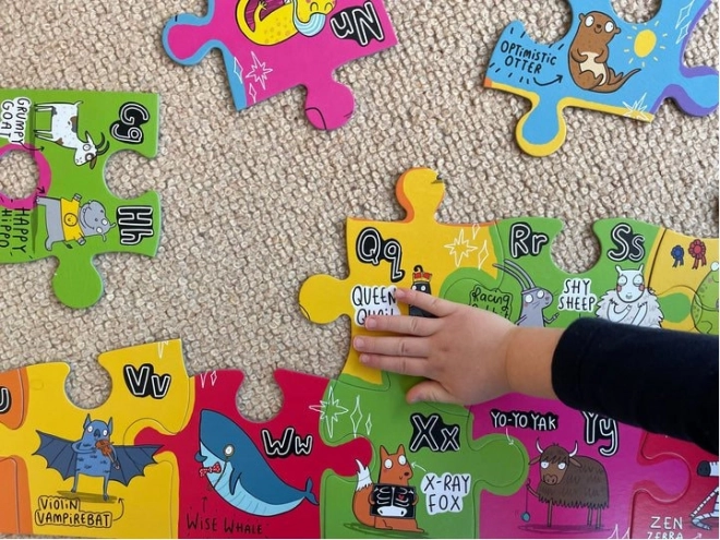 De puzzel helpt bij het ontwikkelen van fijne motoriek, cognitieve vaardigheden en biedt tegelijkertijd praktische instructies in het Engelse alfabet.