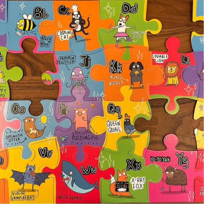 Elk puzzelstukje vertegenwoordigt een unieke dierenfiguur gekoppeld aan een letter van het alfabet. Dit zal kinderen vermaken en tegelijkertijd leren.