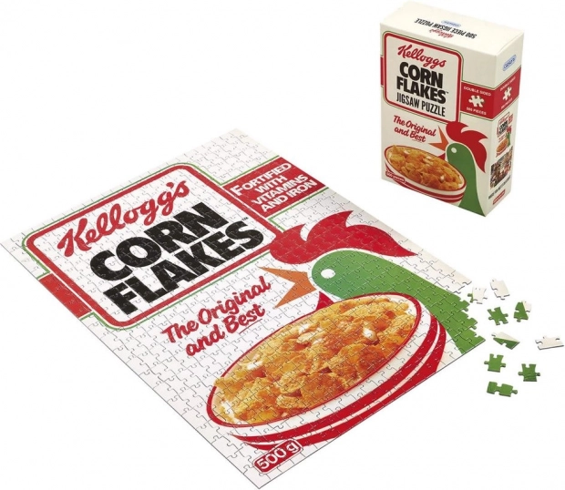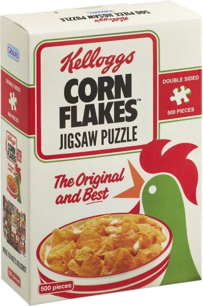 Ontdek de unieke ervaring met dubbelzijdige puzzel 2-in-1 van Kellogg's Cornflakes. Deze puzzel dompelt je onder in de geschiedenis van een van de meest iconische producten van het merk Kellogg's. Geniet van het plezier met twee verschillende ontwerpen aan elke zijde.<32i>