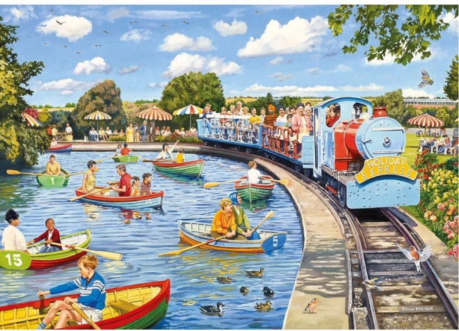 Deze puzzels brengen de levendige sfeer van klassieke vakantiebestemmingen tot leven, met alles van pretparken tot vrolijke hoekjes op het strand.
