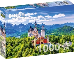Beleef een prachtig uitzicht op Slot Neuschwanstein in de zomer met deze gedetailleerde legpuzzel van 1000 stukjes. Puzzel Slot Neuschwanstein biedt urenlang plezier en ontspanning en vangt perfect de schoonheid van een van 's werelds meest sprookjesachtige kastelen.