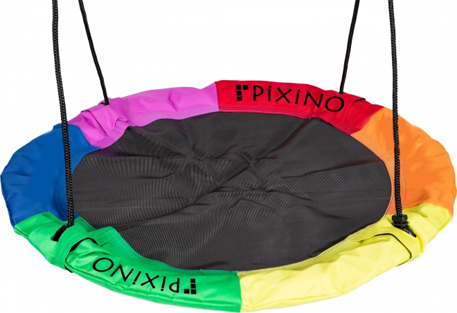 De PIXINO schommelring valt op door zijn bonte design dat elke tuin meer licht en speelsheid geeft.