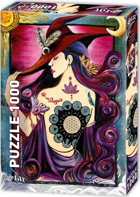Geniet van uren plezier met dit prachtige puzzelthema Dame van de Dierenriem, dat 1000 stukken bevat. Een geweldige manier om je geduld en fijne motoriek te oefenen.