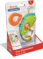Een leuke interactieve rammelaar in de vorm van een vrolijke kameleon die de allerkleinsten thuis en onderweg plezier bezorgt. Eenvoudig te bevestigen aan ledikant, kinderwagen of autostoeltje. Biedt licht- en geluidseffecten met melodieën, rammelende balletjes en ringetjes ter stimulatie van de zintuigen en ontwikkeling van de fijne motoriek. Gemaakt van hoogwaardige, veilige materialen voor de eerste ontdekkingen van de wereld.