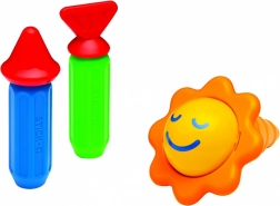 Met de meegeleverde visstok en verschillende vormen kunnen kinderen hun eigen waterwerelden creëren.