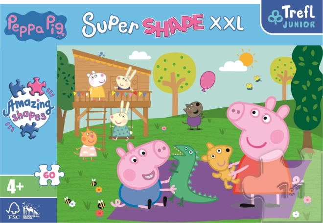 De Puzzle Super Shape 60 XXL brengt kinderen het geliefde PEPPA PIG-motief in een extra groot en overzichtelijk ontwerp. De puzzelstukken zijn aangepast aan kinderhandjes en sommige hebben niet-typische vormen, wat het leggen leuker en intuïtiever maakt.