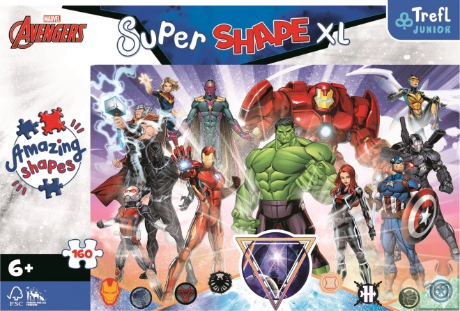 Ontdek het plezier van de XL Super Shape puzzel met het thema Avengers. De set bevat 160 stukjes, inclusief onconventionele vormen die het leggen nog interessanter maken. Ideaal voor kinderen vanaf 6 jaar – stimuleert de ontwikkeling van de fijne motoriek, geduld en logisch denken. Na het leggen ontstaat een afbeelding van 600 × 400 mm.