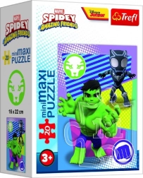 Ontdek de magie van puzzelen met favoriete helden uit de wereld van MARVEL. De Minipuzzel miniMAXI met 20 stevige stukjes ontwikkelt fijne motoriek, concentratie en geduld. Dankzij de grotere stukjes zijn ze gemakkelijk te leggen, ook voor jongere kinderen, en de kleurrijke illustraties van Spidey en zijn vrienden stimuleren tot verder spelen.