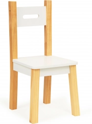 De set bevat twee comfortabele stoelen met dennenhouten poten en een zitting van MDF. De afmetingen zijn afgestemd op de tafel voor comfortabel zitten en een juiste lichaamshouding.