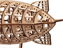 Duik in de fascinerende wereld van steampunk met dit houten luchtvaartuig bouwpakket. Dit pakket biedt een unieke ervaring dankzij het gedetailleerde ontwerp en de mechanische elementen zoals bewegende propellers en wielen.