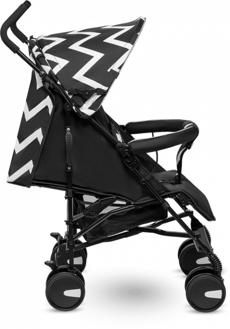 De verstelbare rugleuning en voetensteun creëren ruimte voor slapen en uitrusten. De uitklapbare kap beschermt tegen zon, wind en motregen.