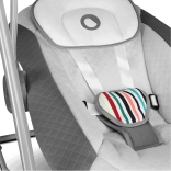 De veiligheid wordt gegarandeerd door het stevige stalen frame en de 5-puntsgordels, terwijl het comfort komt van de zachte, afneembare bekleding met wasbare onderdelen en een kussentje voor de juiste ondersteuning van het hoofdje. Een praktische timer, vijf wiegniveaus en voeding via USB of batterijen zorgen voor maximale flexibiliteit in elk huishouden.