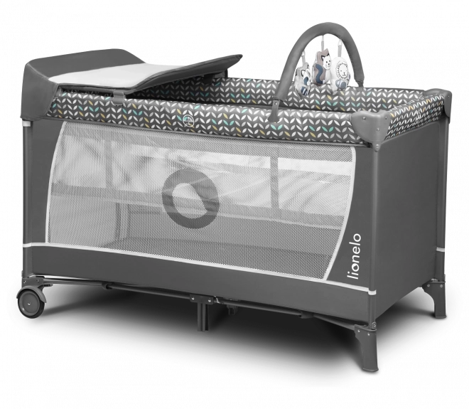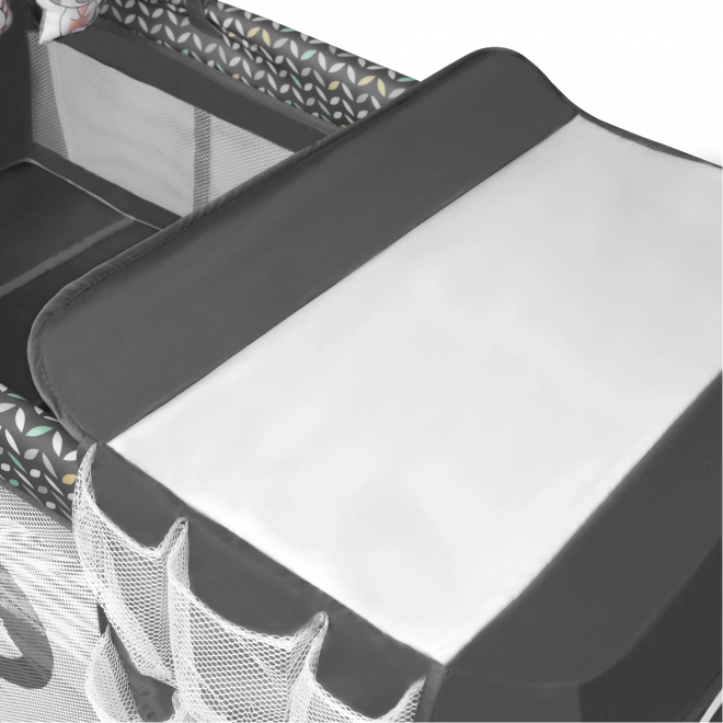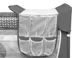 Veiligheid en comfort – LockGuard voorkomt onbedoeld inklappen van het frame, afgeronde randen beschermen tegen verwondingen en ademend gaas aan de lange zijden zorgt voor ventilatie en visueel contact. De verschoontafel met opstaande randen en twee vakken houdt alle benodigdheden binnen handbereik. Een speelboog met speelgoed stimuleert de motoriek en zintuigen van het kind.