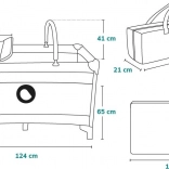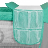 De uitgebreide accessoires omvatten een verschoontafel met verhoogde randen, een praktische organizer voor benodigdheden, een boog met stoffen speeltjes en een zij-ingang met rits voor zelfstandig in- en uitkruipen. De schuimmatras van 120 × 60 × 5 cm met verhoogde veerkracht zorgt voor comfort tijdens slaap en rust. De veiligheid wordt ondersteund door het LockGuard-slot tegen onbedoeld inklappen en conformiteit met EN 716, getest door SGS.