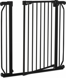 De praktische lage drempel van 1,5 cm met ruimte voor een plint minimaliseert struikelen. De hoogwaardige metalen constructie zonder scherpe randen garandeert duurzaamheid en lange levensduur. Het hekje opent in beide richtingen en dekt een breedte van 75–85 cm (tot 105 cm met verlengstukken).