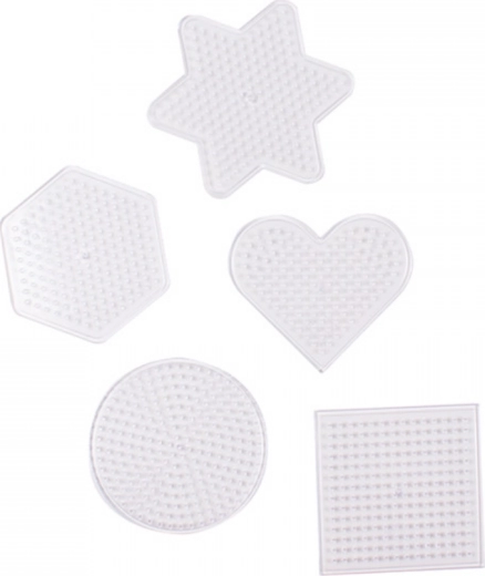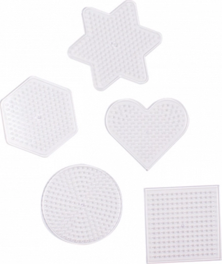 Ontdek leuk en creatief knutselen met de set transparante PLAYBOX onderplaten voor strijkkralen. Vijf basisvormen – vierkant, cirkel, hart, ster en zeshoek – bieden ruime mogelijkheden voor het leggen van eenvoudige tot complexere afbeeldingen. Het transparante materiaal maakt het gebruik van voorbeelden gemakkelijk, zodat kinderen motieven precies kunnen kopiëren en hun fijne motoriek en geduld ontwikkelen.
