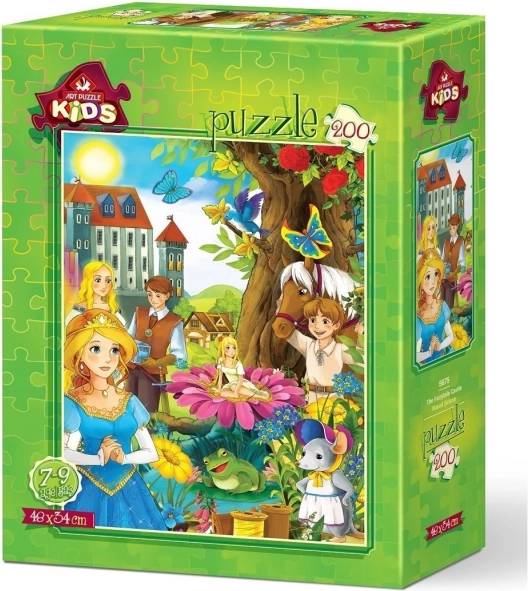 Puzzel met sprookjeskasteel, 200 stukjes. Formaat na het leggen ca. 34 × 48 cm. Plezier voor kinderen en volwassenen, ideaal voor ontspanning en het verbeteren van concentratie.