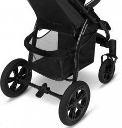 De grote onderhoudsvrije wielen met duurzame loopvlakken en volledige vering nemen kasseien en oneffenheden moeiteloos. Voor zeker sturen zijn er een vergrendeling van de voorwielen en een centrale voetrem. Dankzij de 9-staps hoogteverstelling van de handgreep pas je de kinderwagen aan jouw lengte aan. De veiligheid wordt gewaarborgd door 5-puntsgordels met zachte pads en reflecterende elementen op de kap, de beugel en de voetsteun. De kinderwagen voldoet aan de norm EN 1888.