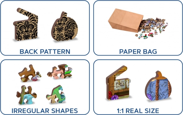 Het dubbelzijdige ontwerp maakt het mogelijk om te puzzelen volgens de afbeelding of volgens het patroon op de achterzijde, dankzij de gedetailleerde laserafwerking die gladde randen zonder splinters garandeert. De milieuvriendelijke uitvoering in een papieren verpakking zonder plastic zorgt ervoor dat je je niet alleen tijdens het puzzelen goed voelt, maar ook vanuit het oogpunt van duurzaamheid.