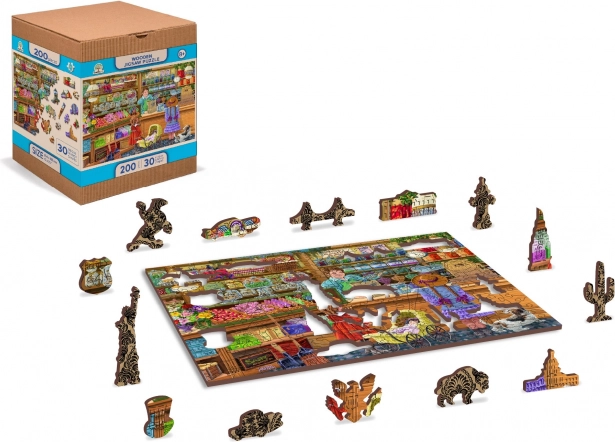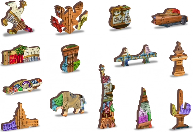 30 uniek gevormde stukjes stellen bekende bouwwerken, dieren of voorwerpen voor, wat de puzzel extra uniek en uitdagend maakt.