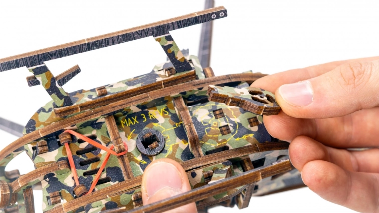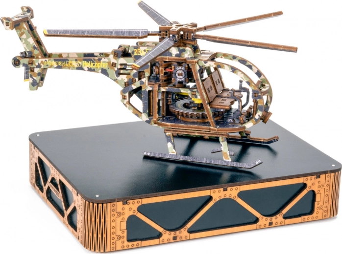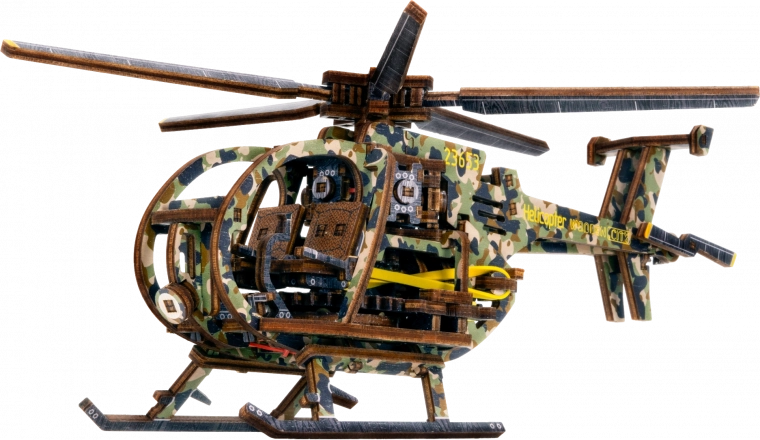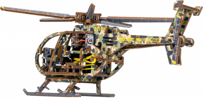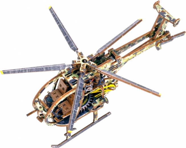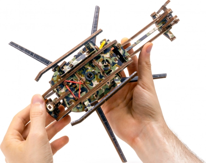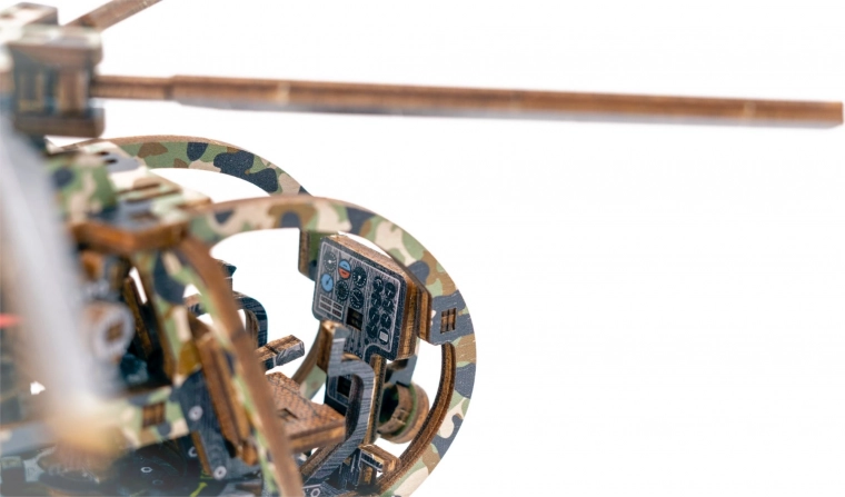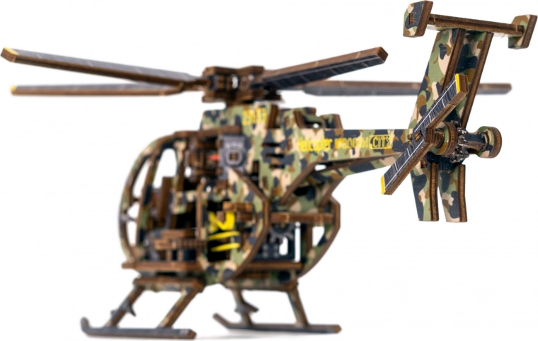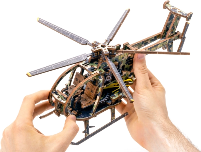 Een houten mechanische bouwset van een militaire helikopter wacht op je! Dankzij het unieke ontwerp en de verrassende details van dit model wordt je tijdsbesteding gevuld met plezier en geweldige emoties. Eigenschappen van het model: - opvallende kleurelementen dankzij zeer nauwkeurige UV-print, - houten doos dient als standaard, - collectie-editie. De 3D-puzzel WOODEN CITY Helicopter is het beste cadeau voor elke luchtvaartliefhebber.