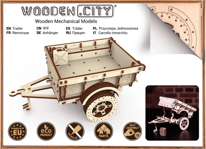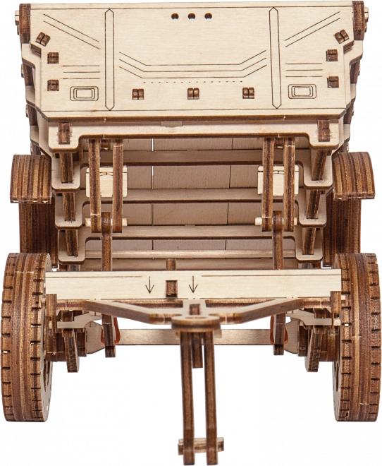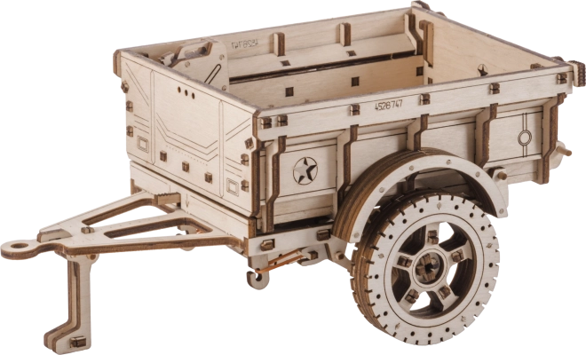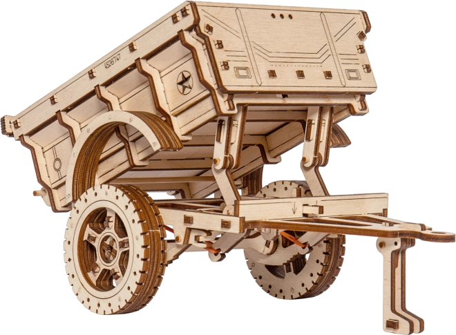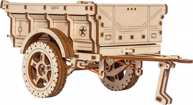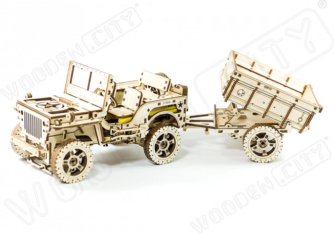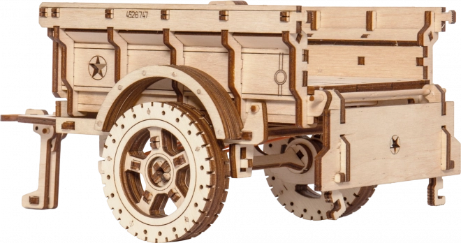 De militaire aanhanger WOODEN CITY is een stijlvolle houten mechanische bouwpuzzel die iedere techniek- en modelbouwer zal bekoren. Dankzij de precieze lasersnede in berkenmultiplex passen de onderdelen exact in elkaar – montage gebeurt zonder lijm en is schoon, snel en leuk. Het resultaat is een indrukwekkend decoratief model met functionele elementen dat perfect past bij bijvoorbeeld een houten Jeep 4x4.