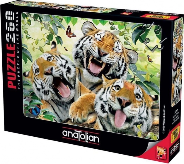 Deze geweldige puzzel van het merk Anatolian biedt een effectieve manier om te ontspannen en van je vrije tijd te genieten. Het beeld van een tijger, vastgelegd met een komische selfie-uitdrukking, spreekt niet alleen kinderen maar ook volwassenen aan. Het is een geweldige manier om concentratie en geduld te versterken.