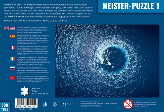Meister-puzzle 1: schip is ontworpen voor ervaren puzzelliefhebbers die op zoek zijn naar een hogere moeilijkheidsgraad en graag focussen op detail. Dankzij het zeer uitdagende scheepsmotief geniet je van vele uren doordacht puzzelen en het verdiende gevoel van een voltooid werk met een formaat van ca. 47 × 33 cm.
