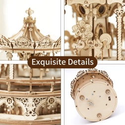 Het model bevat 384 nauwkeurig gesneden stukken, die de indruk wekken van een klassieke houten carrousel met rijke decoratie.