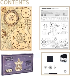 Wanneer u hem in elkaar zet, siert de carrousel uw plank en zal de gedetailleerde afwerking u verrassen. Voor extra plezier tijdens het assembleren, speelt een romantische melodie die u kunt afspelen dankzij een kwalitatieve 18-tonige muziekdoos gemaakt van Japanse componenten.