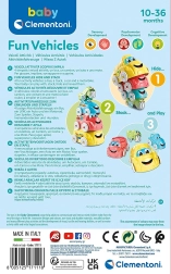 Ontdek de leuke set voor de allerkleinsten – stapelbare CLEMENTONI BABY voertuigen uit de Play for Future-collectie. Vier kleurrijke voertuigen – bus, vrachtwagen, personenauto en motor – kun je op elkaar stapelen, in elkaar passen en steeds opnieuw ontdekken. Gemaakt van 100% recyclebare materialen en van niet-giftige (non‑toxic) kunststof voor veilig spelenderwijs leren.