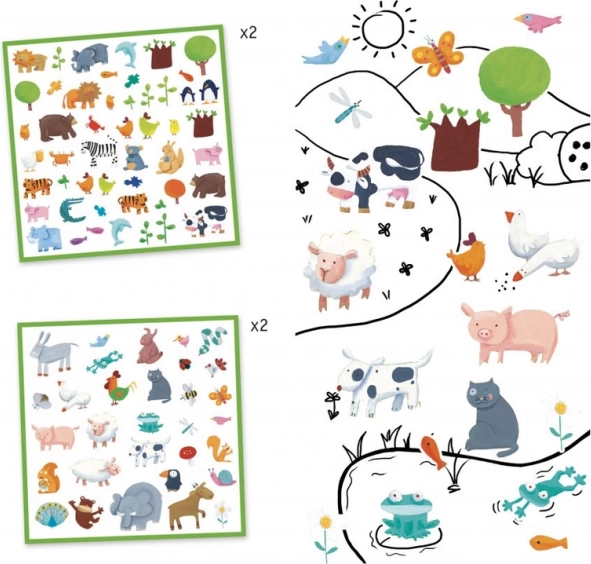 Creëer je eigen dierenwereld met de DJECO ZOO sticker set. Er wachten in totaal 160 stickers op 4 vellen (steeds 2 identieke vellen), vol schattige en kleurrijke diertjes. Ideaal voor knutselen, het versieren van schriften, kaarten en kinderprojecten.