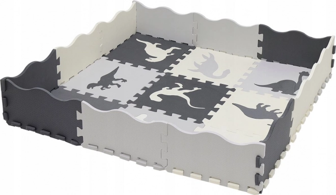 Creëer voor je kind een veilige speelhoek met een hoogwaardige schuimen speelmat met dinosaurusmotief in elegante grijstinten. De afzonderlijke onderdelen worden eenvoudig als een puzzel in elkaar gezet, met uitneembare vormen die de fijne motoriek en verbeelding stimuleren.