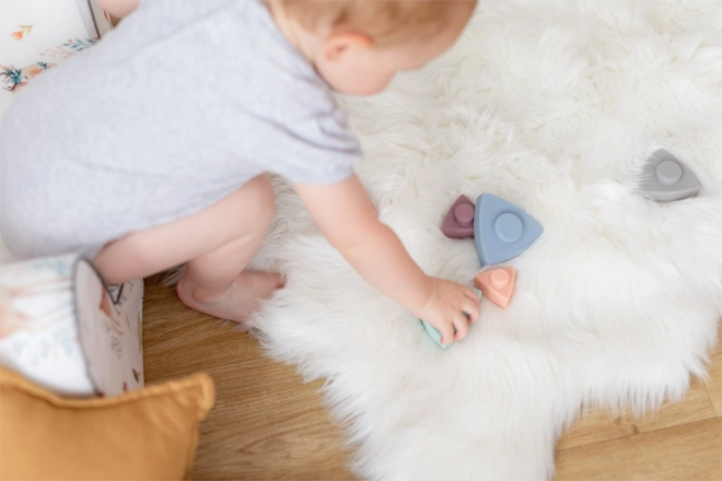 Deze siliconen stapeltoren met driehoeken is een uitstekende keuze voor zinvol spel voor de allerkleinsten. De zachte, aangename onderdelen stapelen gemakkelijk op elkaar en ondersteunen zo de oog-handcoördinatie, fijne motoriek en logisch denken. Dankzij de zachte pasteltinten leren kinderen op een natuurlijke manier vormen en kleuren onderscheiden.