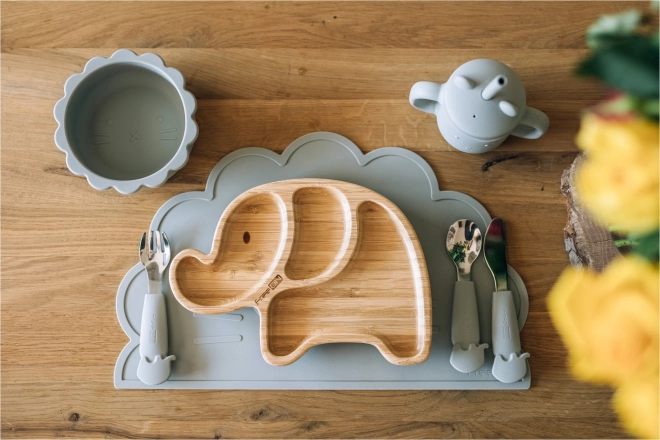 Praktische siliconen onderlegger met leeuwenmotief in een elegante grijze kleur die zorgt voor orde tijdens eten en spelen. Dankzij voedselveilig siliconenmateriaal hecht hij stevig aan de tafel, zodat servies en speelgoed niet wegglijden. Hij is antislip, kindveilig (vrij van BPA, PVC, latex en ftalaten), makkelijk schoon te maken en vaatwasmachinebestendig – ideaal voor thuis en onderweg.
