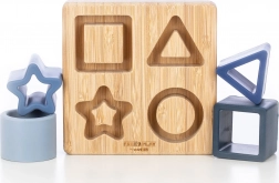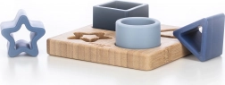 Deze kwalitatieve houten insteekpuzzel met blauwe siliconen stukjes (vierkant, driehoek, ster en cirkel) is ontworpen om kinderen op een natuurlijke manier te helpen bij het herkennen van vormen en kleuren. Het zachte oppervlak van de stukjes voelt prettig aan, ligt goed in de hand en motiveert tot herhaaldelijk spelen.