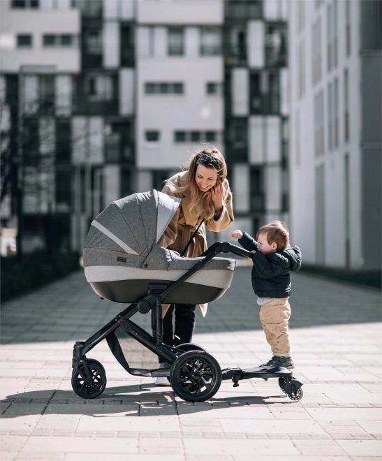 Het praktische FreeON opstapje met zitje verandert je kinderwagen in een flexibele oplossing voor twee kinderen. De oudere broer of zus kan comfortabel staan of zitten, terwijl de jongere in de kinderwagen rust. Biedt universele compatibiliteit met de meeste Europese kinderwagens, robuuste en snelle bevestiging, een zitting die 180° kan draaien en duurzame zwenkwielen voor een soepele rit.