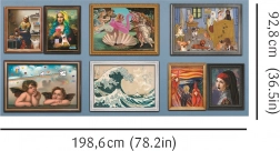 De totale afmeting van de puzzel volgens de posteropzet is 1985,6 x 928 mm*. Dankzij UFT-technologie kunnen panelen/puzzels willekeurig worden verbonden, wat verschillende totale afmetingen van de compositie mogelijk maakt.