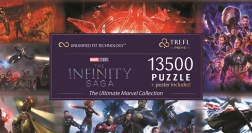 Een verbluffende puzzel die de avonturen van de helden uit het Marvel-universum afbeeldt. Elke afbeelding is afzonderlijk verpakt (9x1500 stukjes). Dankzij de TREFL Unlimited Fit Technology (UFT), die het mogelijk maakt afzonderlijke afbeeldingen met elkaar te verbinden, kun je een willekeurige compositie maken of de opstelling volgens het voorbeeld volgen.
