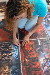 Puzzelstukjes blijven aan elkaar – de gelegde afbeeldingen kunnen gemakkelijk worden verplaatst zonder dat het gelegde motief uit elkaar valt.