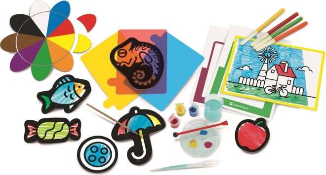 De Montessori-set van Clementoni is ontworpen om de vaardigheden van kinderen op het gebied van kleur en kunst te ontwikkelen. Kinderen kunnen experimenteren met kleuren en verschillende artistieke hulpmiddelen gebruiken: