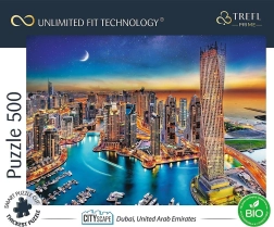 Ontdek slim puzzelen met de TREFL UFT Cityscape: Dubai met 500 stukjes. Dankzij de Unlimited Fit Technology kun je meerdere motieven tot één grote collage combineren, waarbij jij de grenzen bepaalt. Je kunt rekenen op topkwaliteit met blauw karton, unieke puzzelstukvormen en een stabiele verbinding voor eenvoudig verplaatsen van het voltooide beeld. Het ecologische bioverpakking zonder plastic folie zal iedereen aanspreken die om de natuur geeft.
