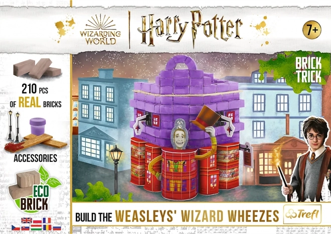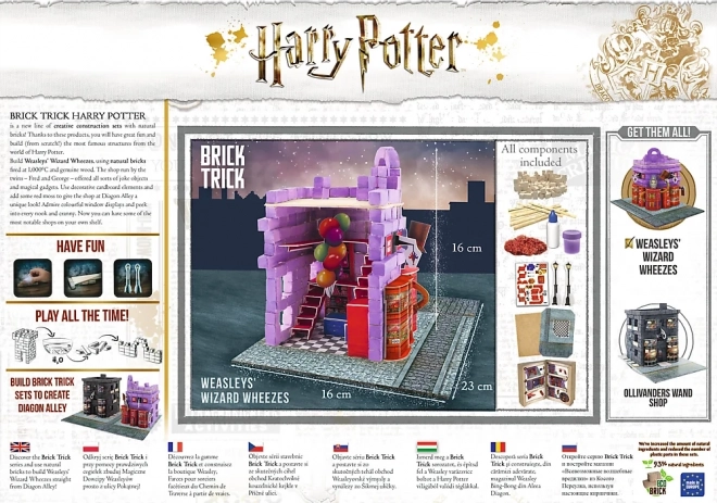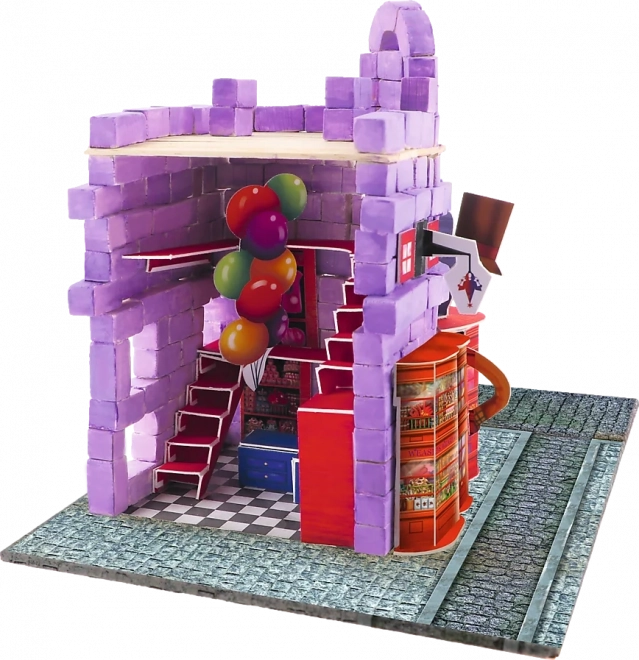 Maak thuis een magisch hoekje met de kleurrijke winkel van tweelingbroers Fred en George. De Brick Trick-set combineert echte materialen – mini baksteentjes en houten plankjes – met decoraties die het bouwwerk karakter geven. Stap voor stap bouw je het gebouw vanaf de basis tot het eindmodel en werk je het af met de meegeleverde elementen.