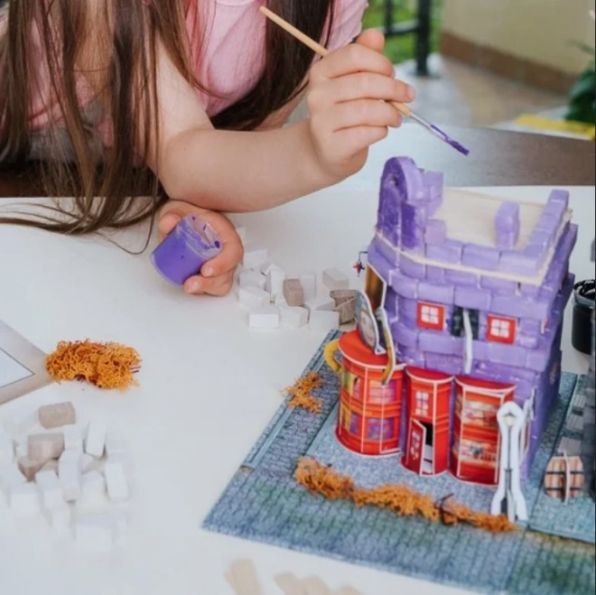 Bouw de legendarische winkel Weasleys Tovenaarsgrappen uit de Harry Potter-reeks met echte mini bakstenen en hout. De creatieve set met 210 onderdelen biedt realistisch bouwen, kartonnen decoraties, mos en steentjes voor een authentieke sfeer van de Wegisweg. De herbruikbare bouwset met in water oplosbare lijm bevat meer dan 93% natuurlijke materialen en stimuleert handvaardigheid, verbeelding en concentratie.