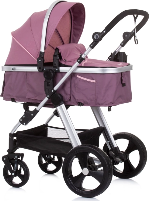 Stijlvolle 2-in-1 kinderwagen met een combinatie van reiswieg en sportzitje in één, een licht en stevig frame, grote geveerde wielen en uitgebreide uitrusting voor comfortabel reizen met je baby. Dankzij de mogelijkheid om met de rijrichting mee of tegen de rijrichting in te plaatsen, het verstelbare rugleuning, 5-puntsgordels en een verstelbare duwbeugel is dit de ideale keuze voor moderne ouders. Inclusief voetenzak, bekerhouder, muggennet, handtas en een ruime mand.